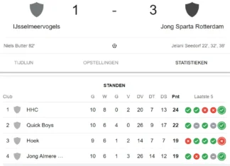 Jong Sparta won gisteren met 1-3 uit bij IJsselmeervogels. Een prima overwinning. Jelani Seedorf was de man van de wedstrijd. Hij scoorde alledrie de...