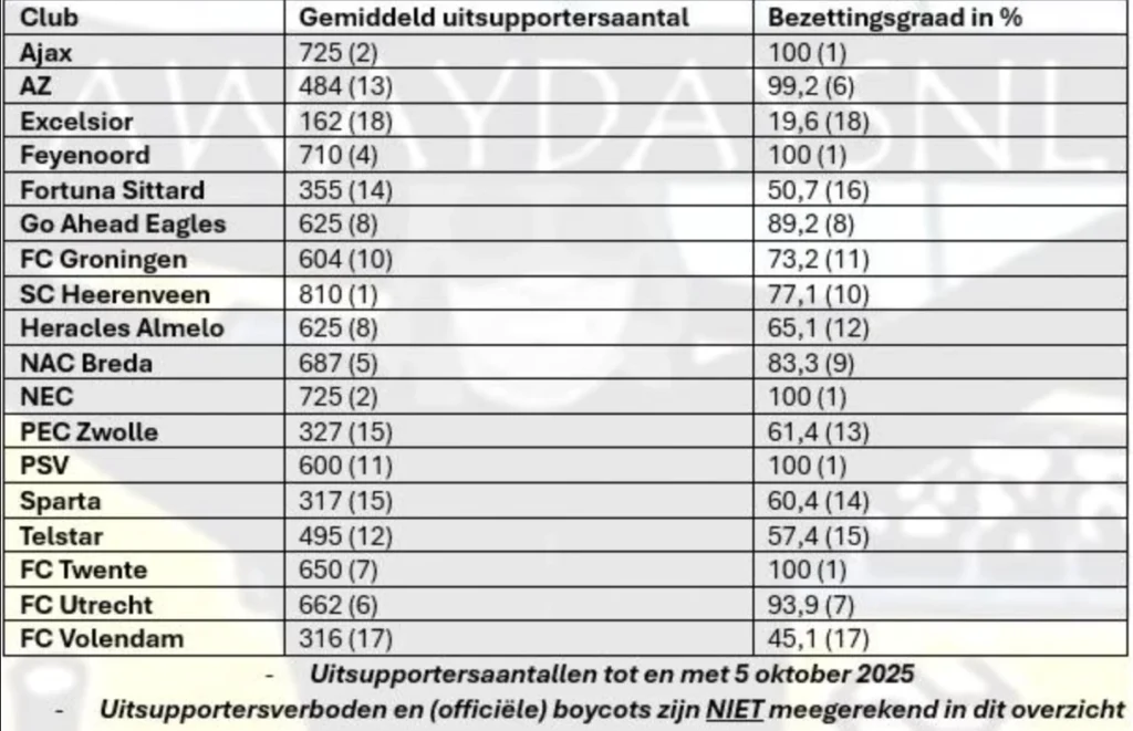 De supporters van Sparta lijken dit seizoen nog niet echt reislustig te zijn. De bekende social media posts van Awaydays NL laten een beeld zien dat er in het verleden wel eens anders uit zag: